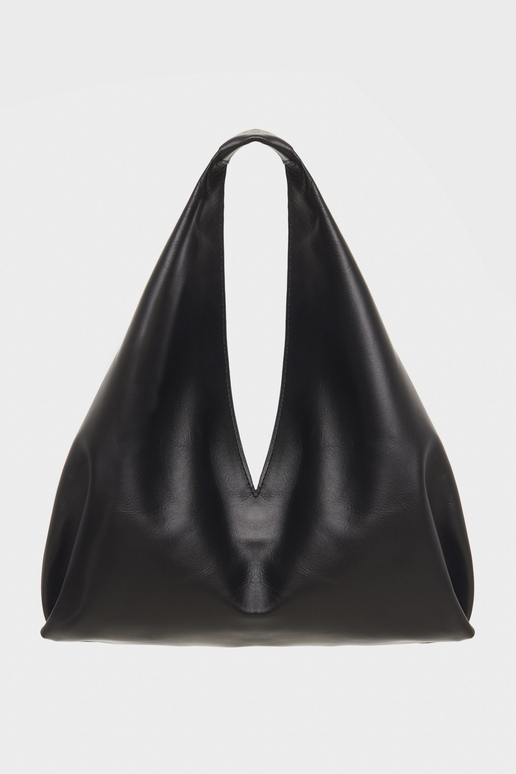 The Sin leather bag is crafted from smooth leather with a slouchy silhouette and a deep V-cut opening. A single shoulder strap makes it comfortable to carry, while the spacious interior holds everything you need for day-to-day life.
